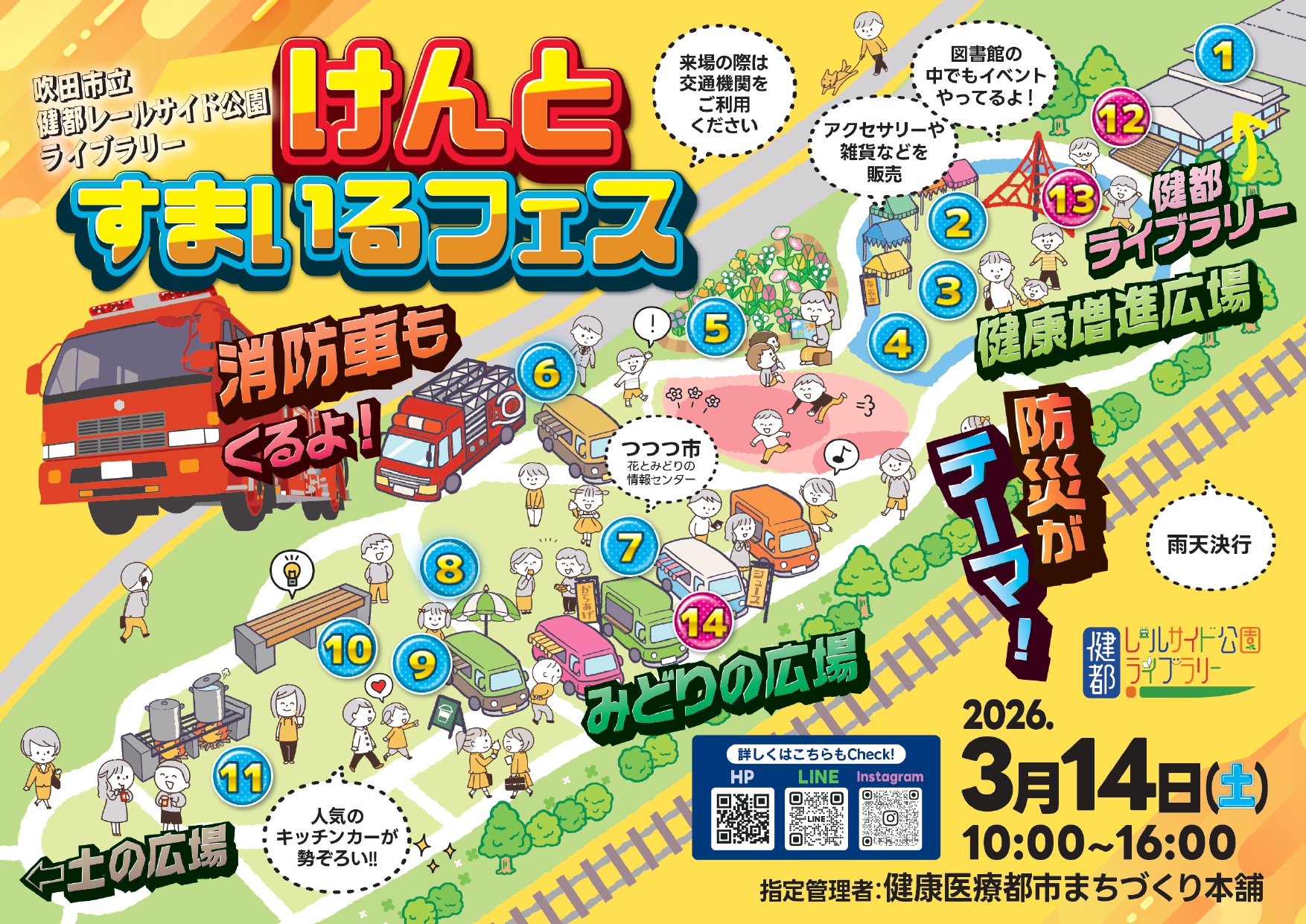 3月14日(土)健都レールサイド公園ライブラリーにて「けんとすまいるフェス」を開催します。